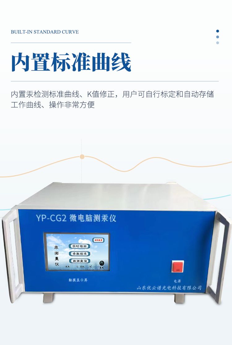 2.內置汞檢測標準曲線、K值修正,用戶可自行標定和自動存儲工作曲線、操作非常方便。