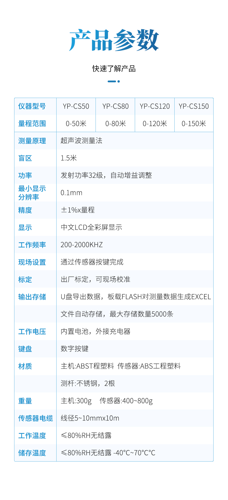 【產品簡介】量程范圍:0-50米