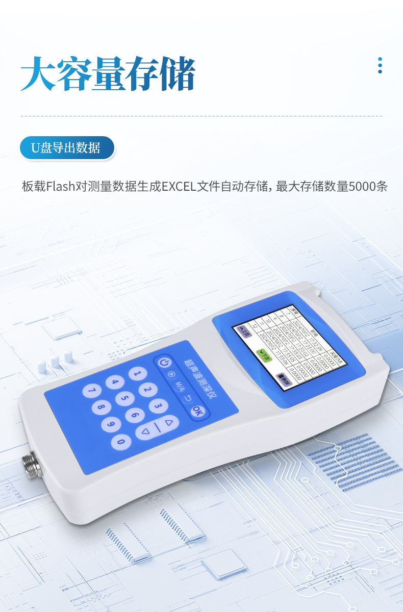 輸出、存儲U盤導出數據,板載FLASH對測量數據生成EXCEL文件自動存儲,最大存儲數量5000條。