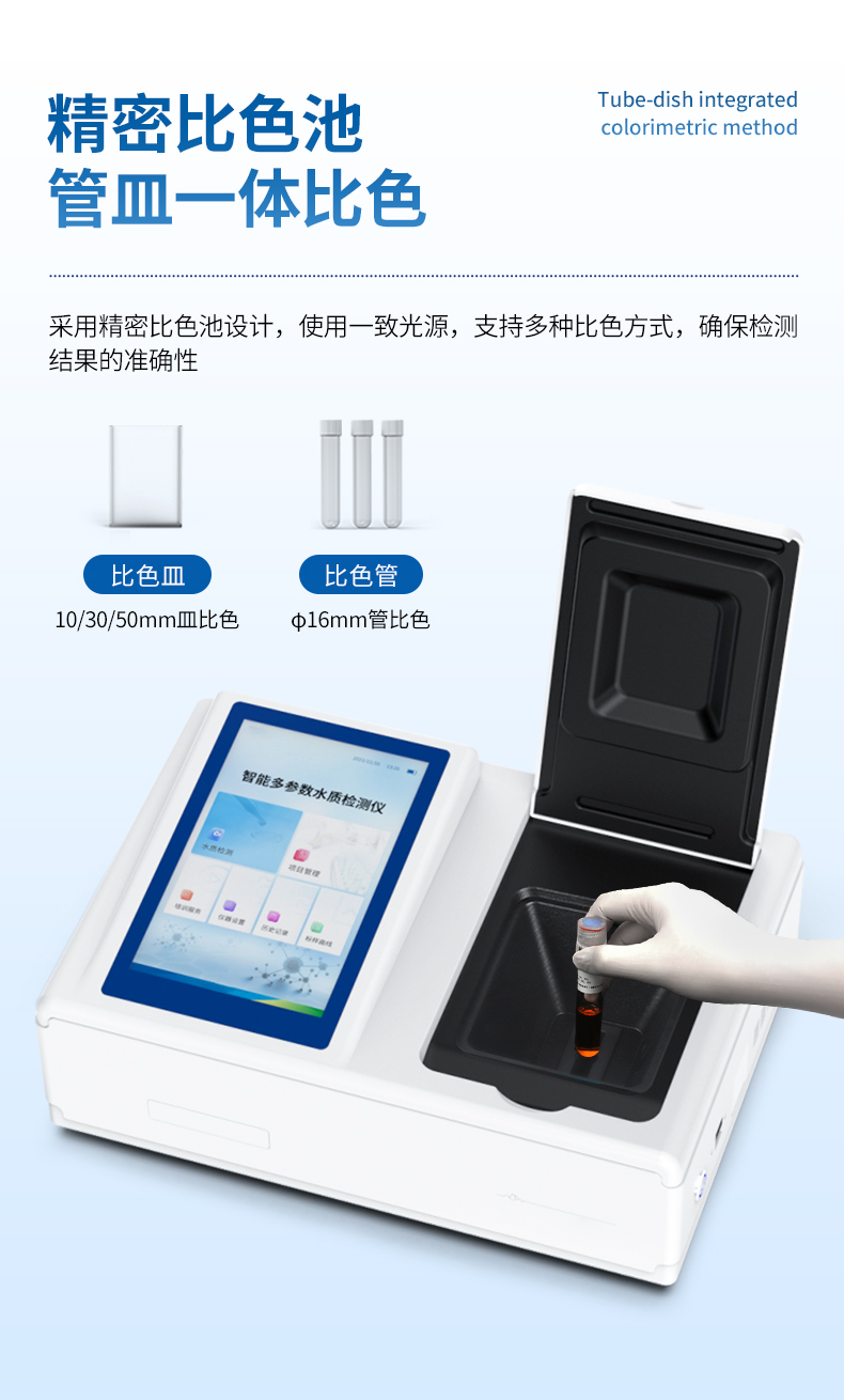 比色方式:支持10mm、30mm、40mm、50mm皿比色和φ16mm管比色等比色方式