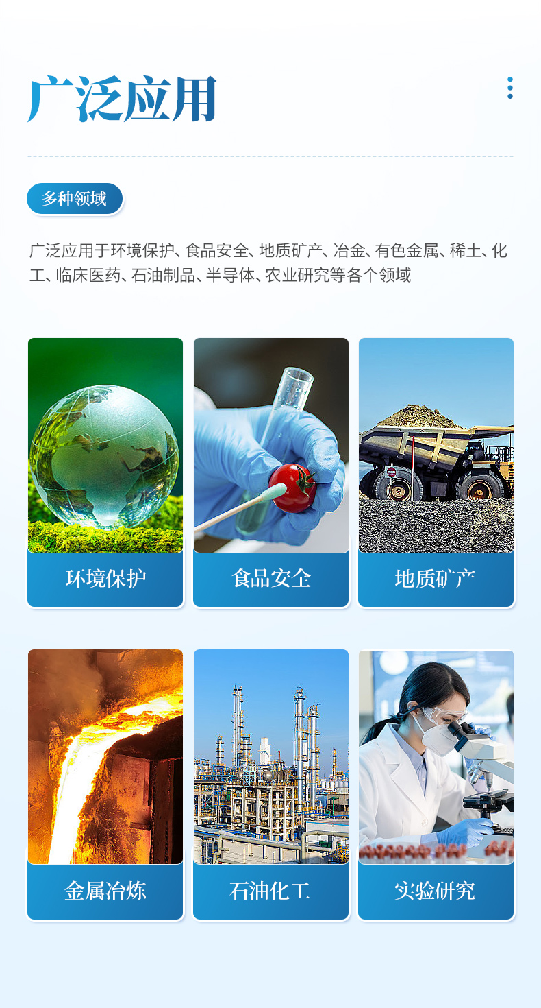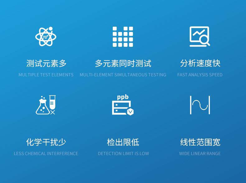 ● 檢出限低,絕大多數元素可達 ppb 級。