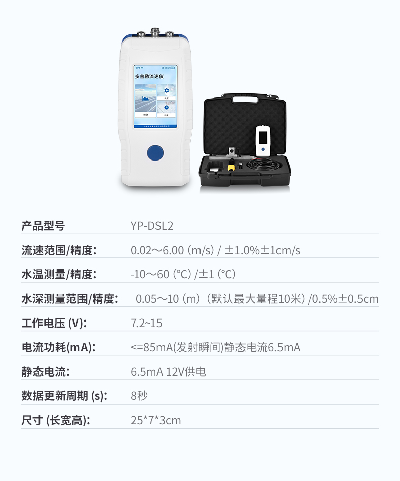 【產品簡介】流速范圍:0.03~5.00 m/s;流速精度:±1.0%±1cm/s