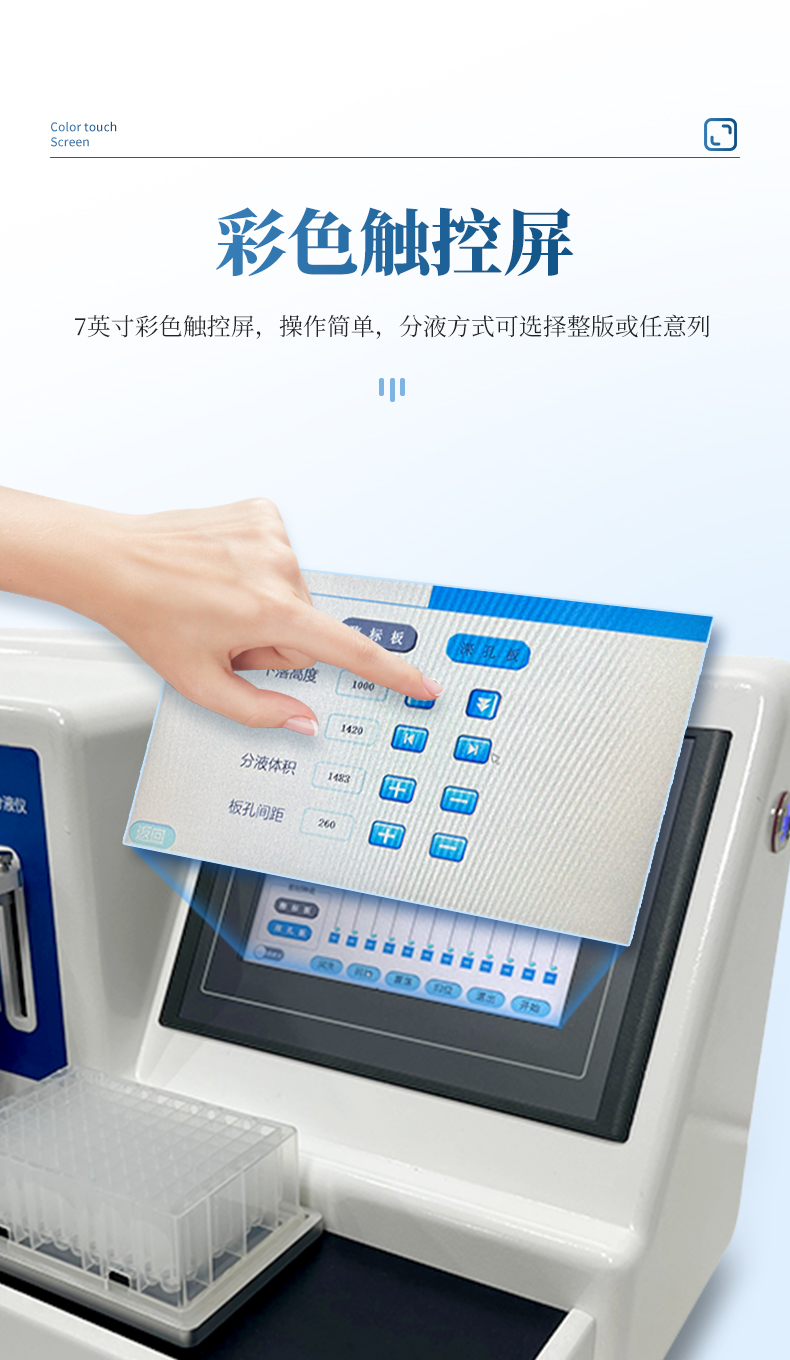 4、采用7英寸彩色液晶觸摸屏,操作簡單,分液方式可選擇整版或任意列。