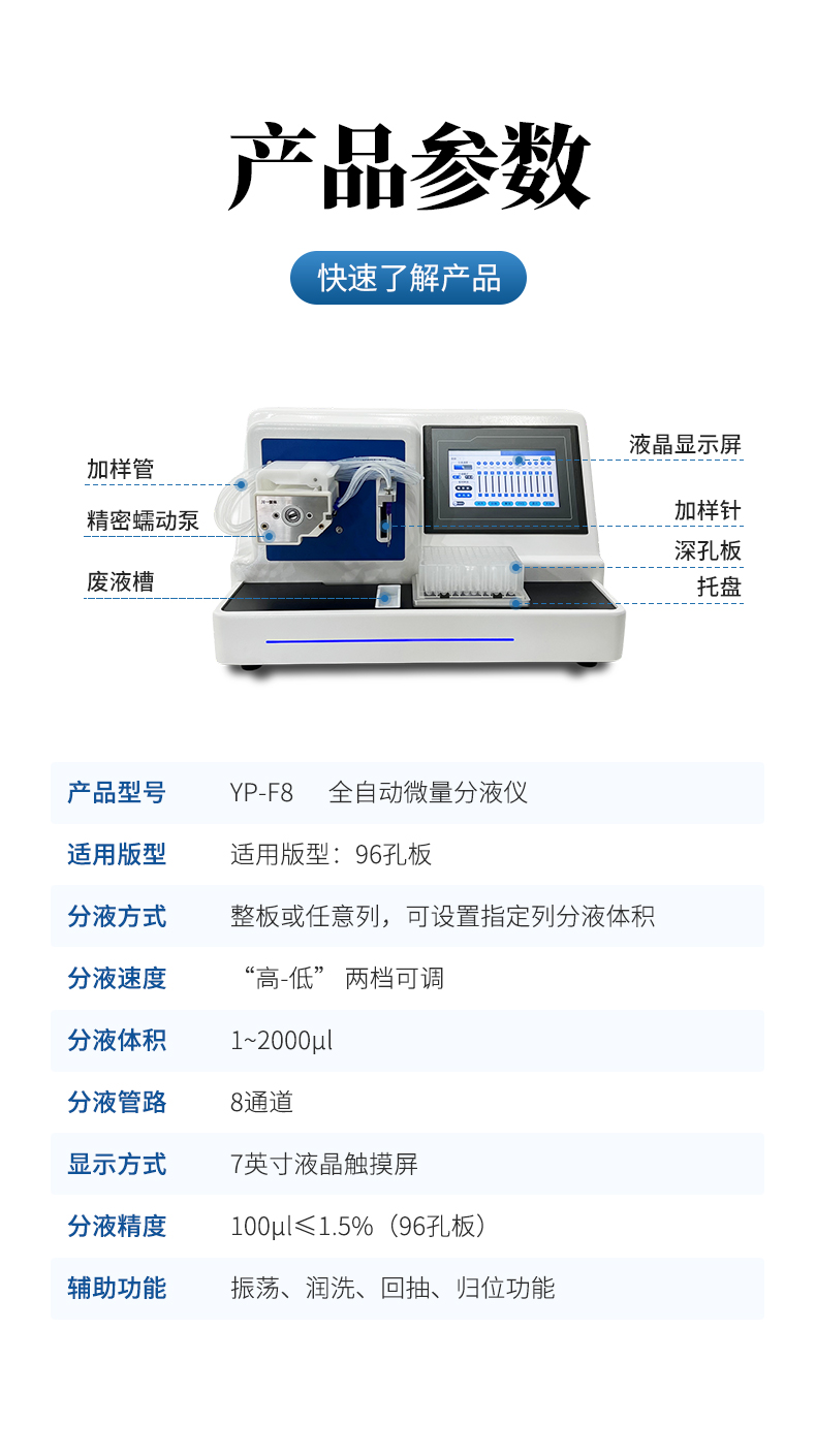 全自動微量分液儀(以下簡稱“分液儀”)是一種配備高精度蠕動泵的分液設(shè)備,能夠快速、精確、一致的完成自動化分液操作。可廣泛應用于疾控篩查、食品檢測、動物檢疫、生命科學研究等領(lǐng)域。解放實驗員雙手,在提高效率的同時避免錯誤。