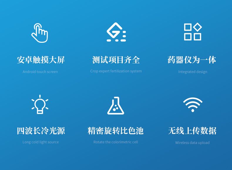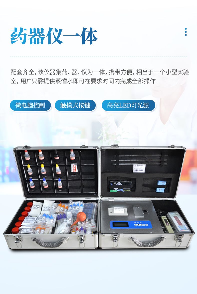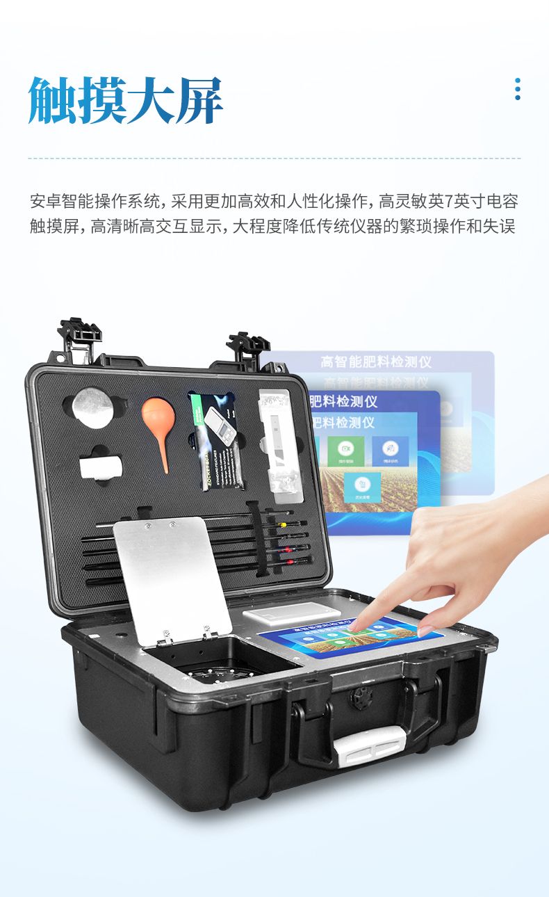 配套齊全,該儀器集藥、器、儀為一體,攜帶方便,相當于一個小型實驗室,用戶只需提供蒸餾水即可在要求時間內完成全部操作。適于農業服務部門或農資經銷商鑒別肥料真假、肥料廠商肥料生產中控、農資質檢部門進行農資打假,規范農資市場。