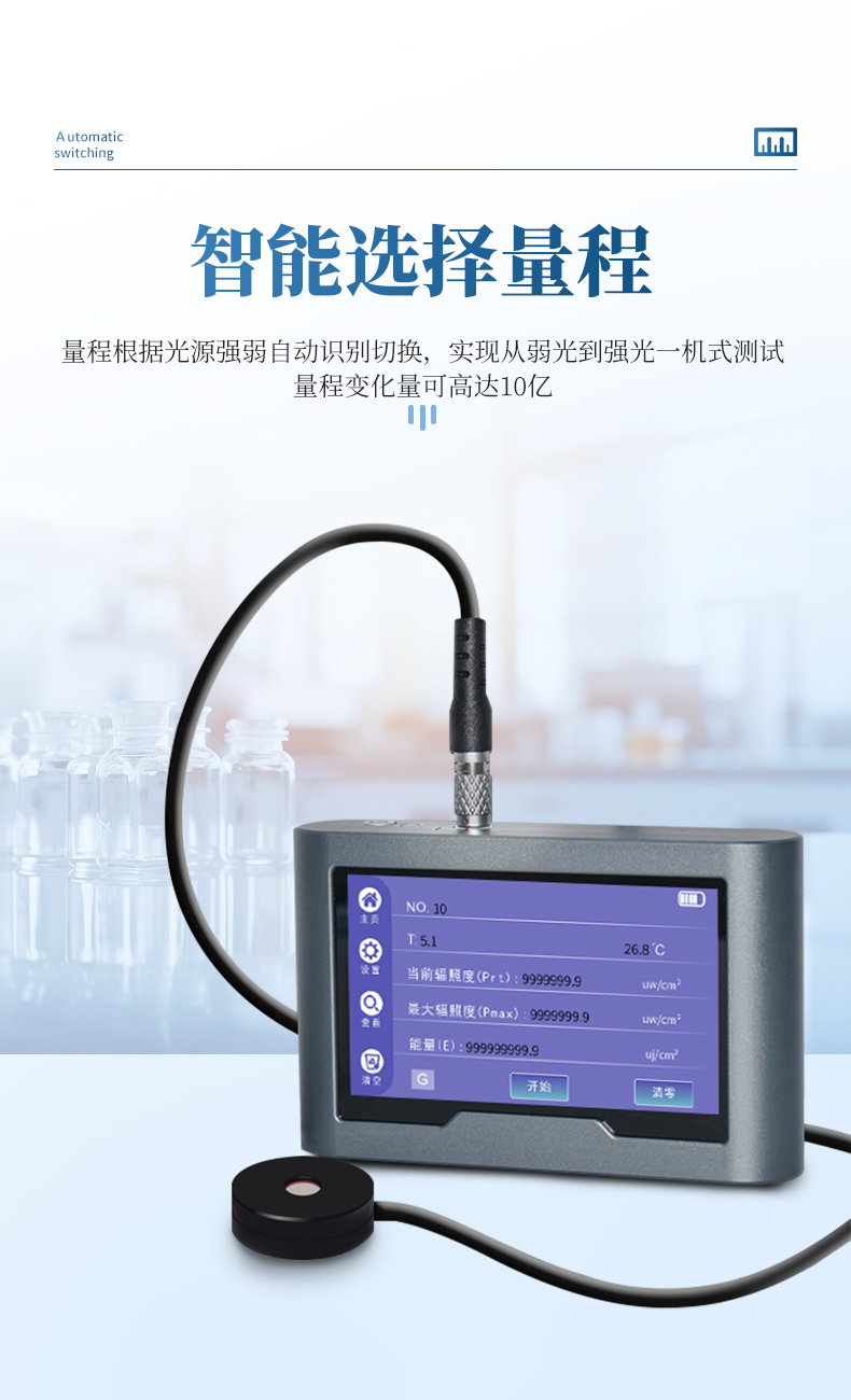 4.智能選擇量程,儀器可根據光源強弱自主切換量程;