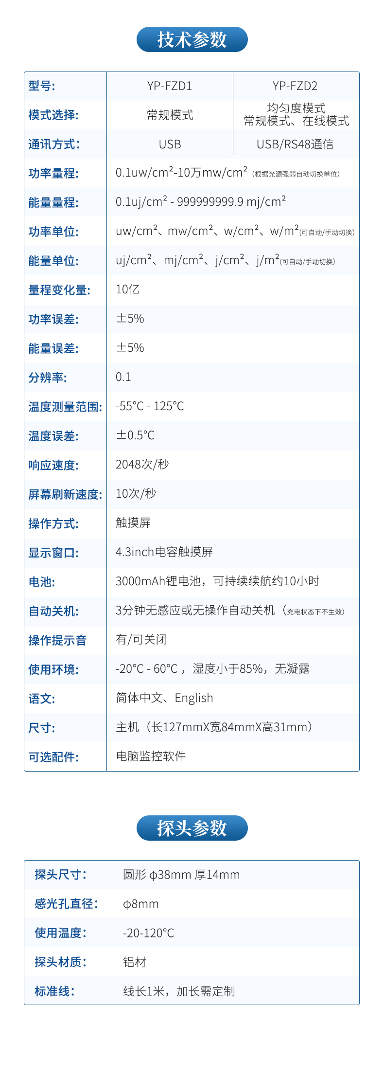 | 功率量程: | 0.1uw/cm2-10萬mw/cm2(根據光源強弱自動切換單位) |