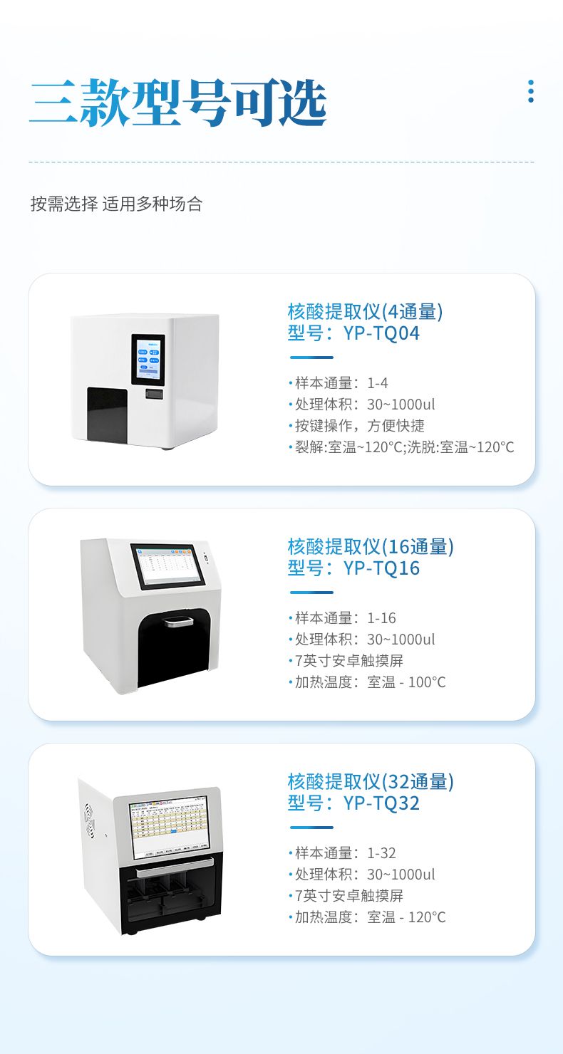核酸提取儀通過磁珠法提取核酸,選擇相應(yīng)的試劑盒就可以自動(dòng)的從多種樣品材料如血液、組織、細(xì)胞中分離純化高純度的核酸。具有兼容性強(qiáng)(適配預(yù)封裝提取試劑盒,也可適配單頭份試劑)、提取速度快、提取回收率高、操作簡(jiǎn)便的優(yōu)點(diǎn),是分子生物學(xué)實(shí)驗(yàn)室檢測(cè)試驗(yàn)的得力“助手”。可廣泛應(yīng)用于科學(xué)研究、分子診斷、動(dòng)植物疫病檢測(cè)等領(lǐng)域。