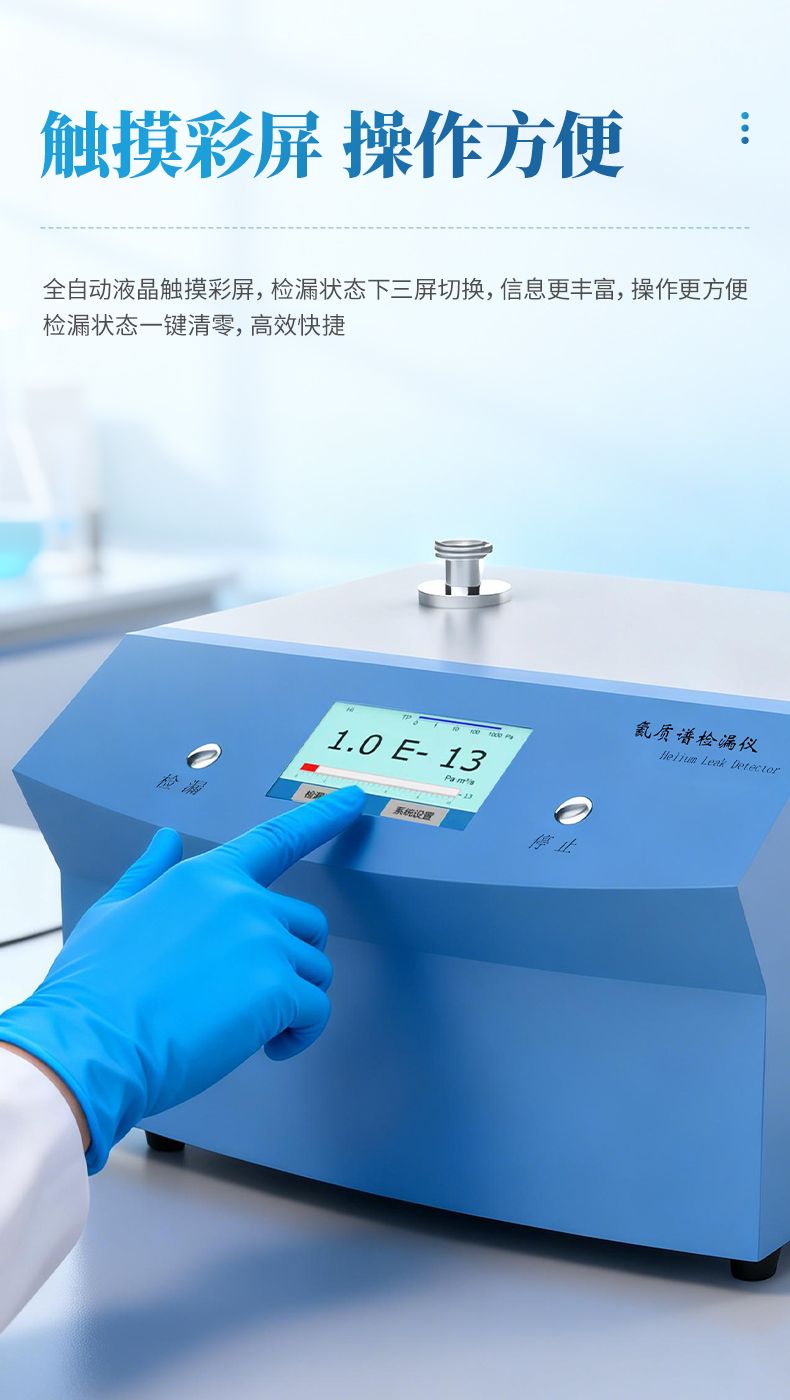 氦質譜檢漏儀是采用質譜學原理、以氦氣為示漏氣體的高精度無損檢漏設備,憑借氦氣大氣含量低、質荷比特征鮮明的優勢,實現超高靈敏度檢漏,可精準定位并定量漏點。設備支持真空噴氦、吸槍掃描、背壓累積等多種檢漏模式,適配真空 / 帶壓容器、密封組件、精密器件等不同檢測需求,廣泛應用于航天航空、半導體、汽車、電子醫療等領域,是高端制造與精密工業中密封檢測的核心設備。