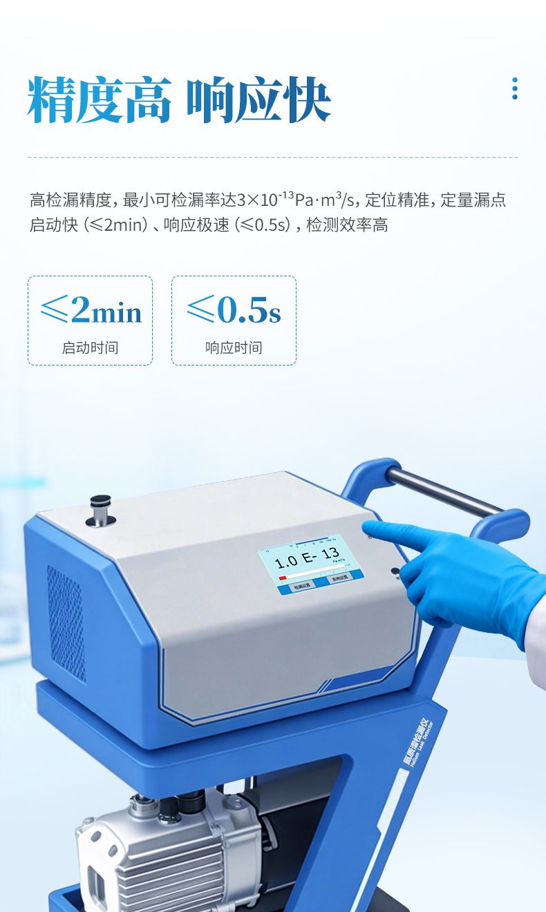 氦質(zhì)譜檢漏儀是采用質(zhì)譜學(xué)原理、以氦氣為示漏氣體的高精度無損檢漏設(shè)備,憑借氦氣大氣含量低、質(zhì)荷比特征鮮明的優(yōu)勢(shì),實(shí)現(xiàn)超高靈敏度檢漏,可精準(zhǔn)定位并定量漏點(diǎn)。設(shè)備支持真空噴氦、吸槍掃描、背壓累積等多種檢漏模式,適配真空 / 帶壓容器、密封組件、精密器件等不同檢測(cè)需求,廣泛應(yīng)用于航天航空、半導(dǎo)體、汽車、電子醫(yī)療等領(lǐng)域,是高端制造與精密工業(yè)中密封檢測(cè)的核心設(shè)備。