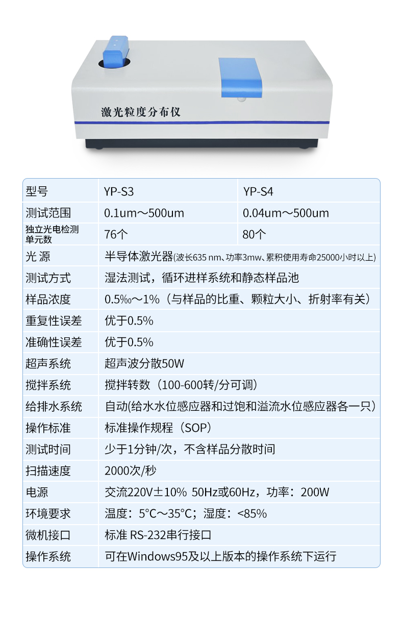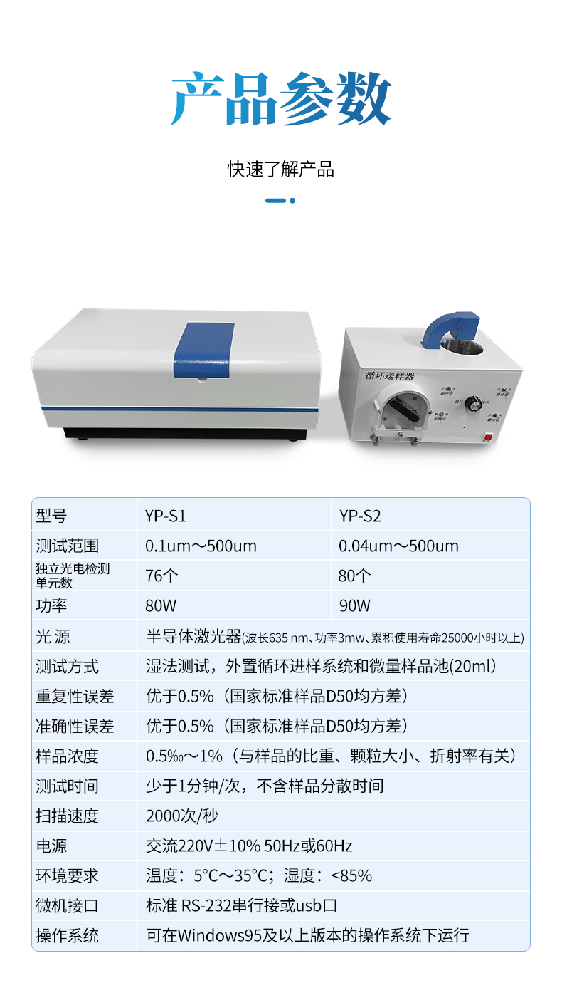 可用于測試各類固體粉末或乳液中顆粒的粒度分布。如: