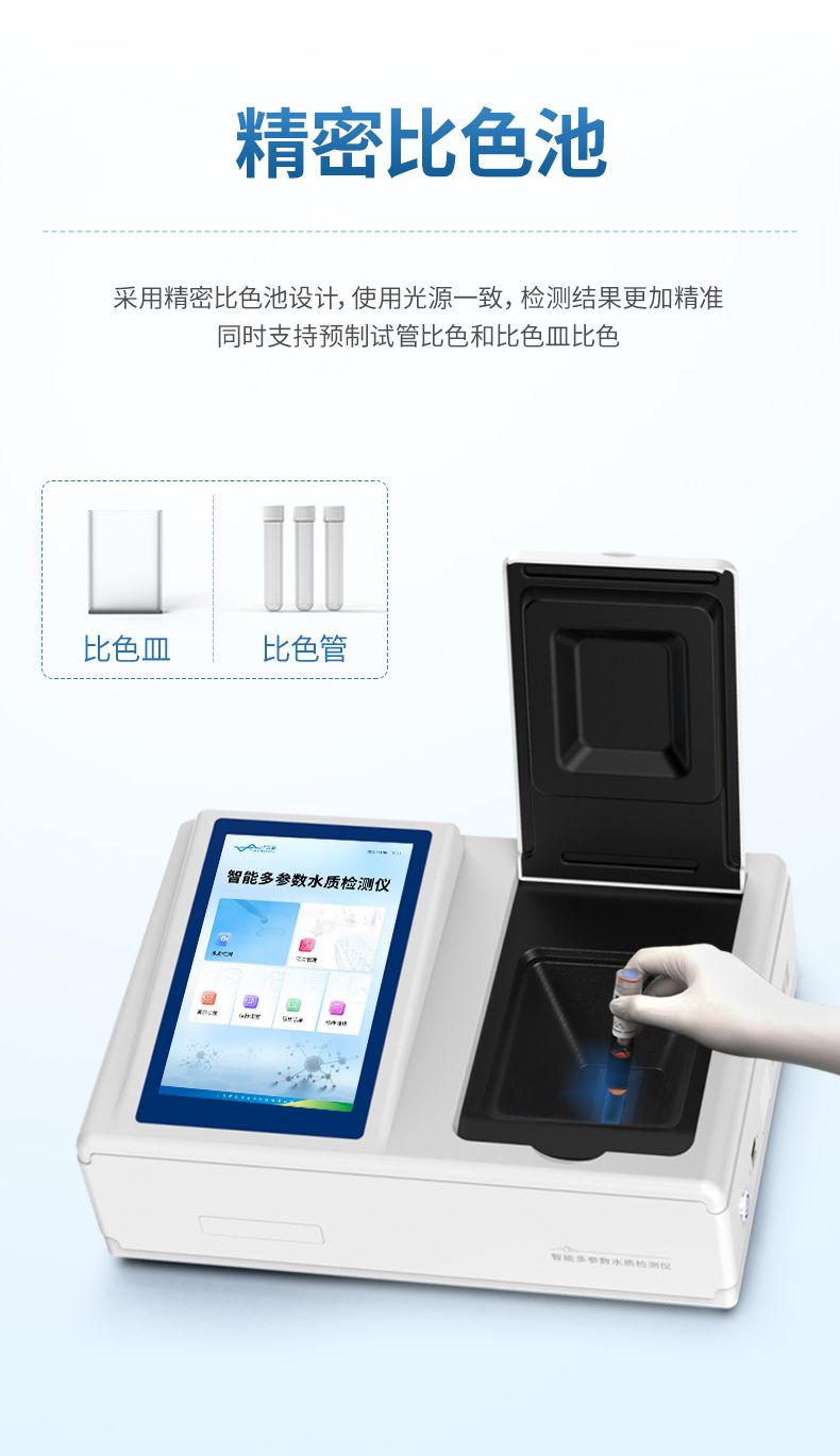3、采用精密比色池設計,使用光源一致,可以解決由于光源誤差帶來的檢測結果誤差問題,檢測結果更加精準。