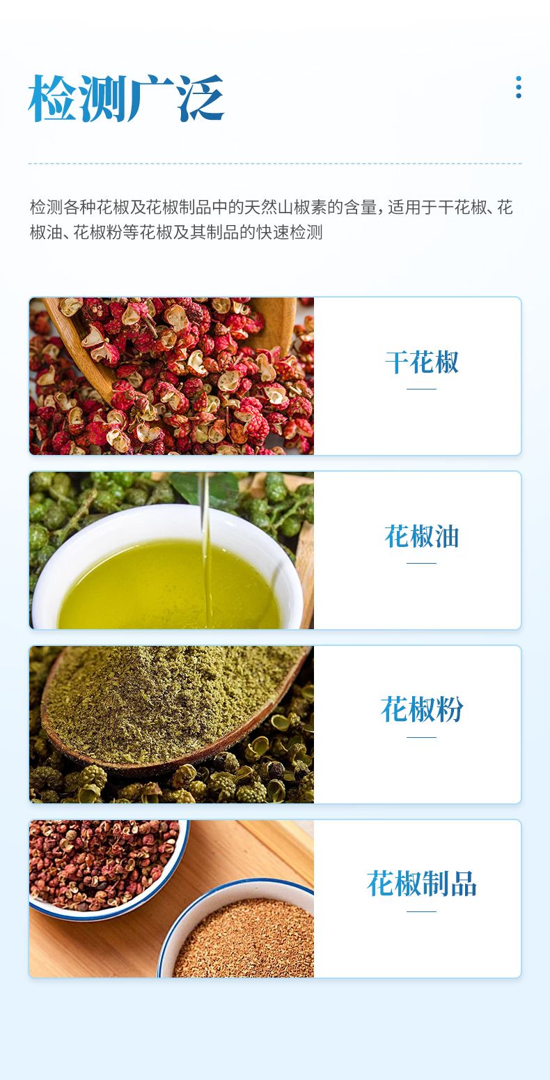 1.  樣品檢測范圍:花椒5-30mg/g  花椒油 0.6-3mg/g;
