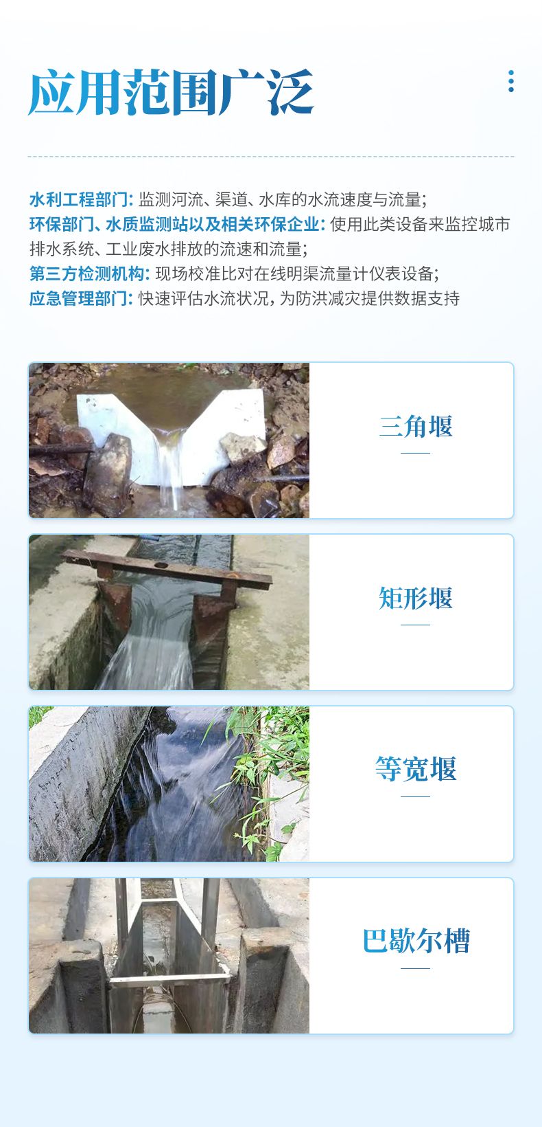 環保部門、水質監測站以及相關環保企業:使用此類設備來監控城市排水系統、工業廢水排放的流速和流量;