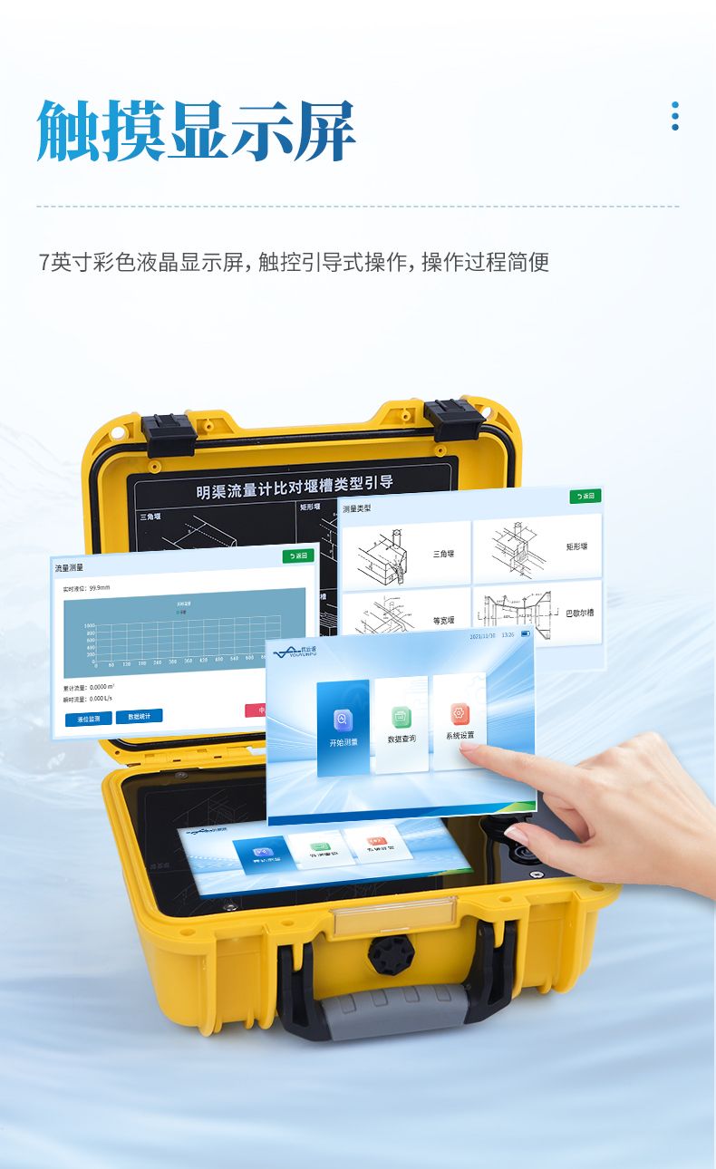 1、適用于三角堰、矩形堰、等寬堰和巴歇爾槽四種堰槽類型;