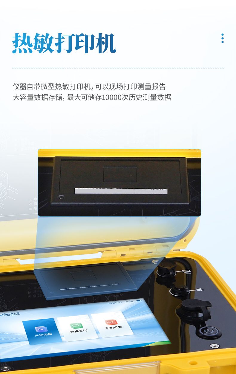 7、儀器自帶微型熱敏打印機,可以現場打印測量報告;