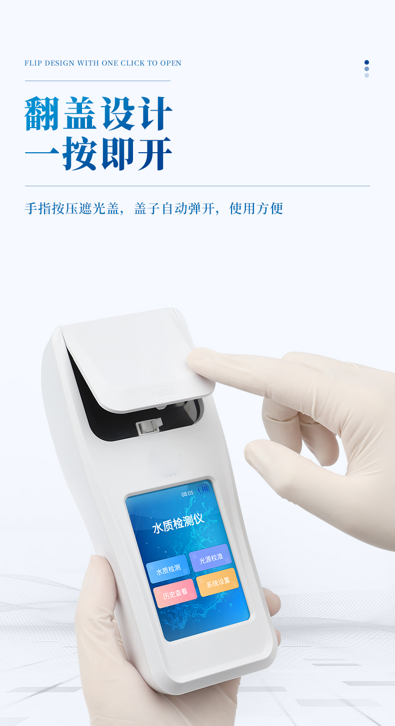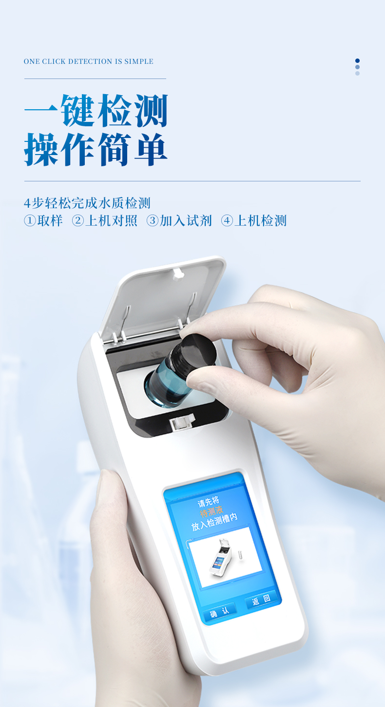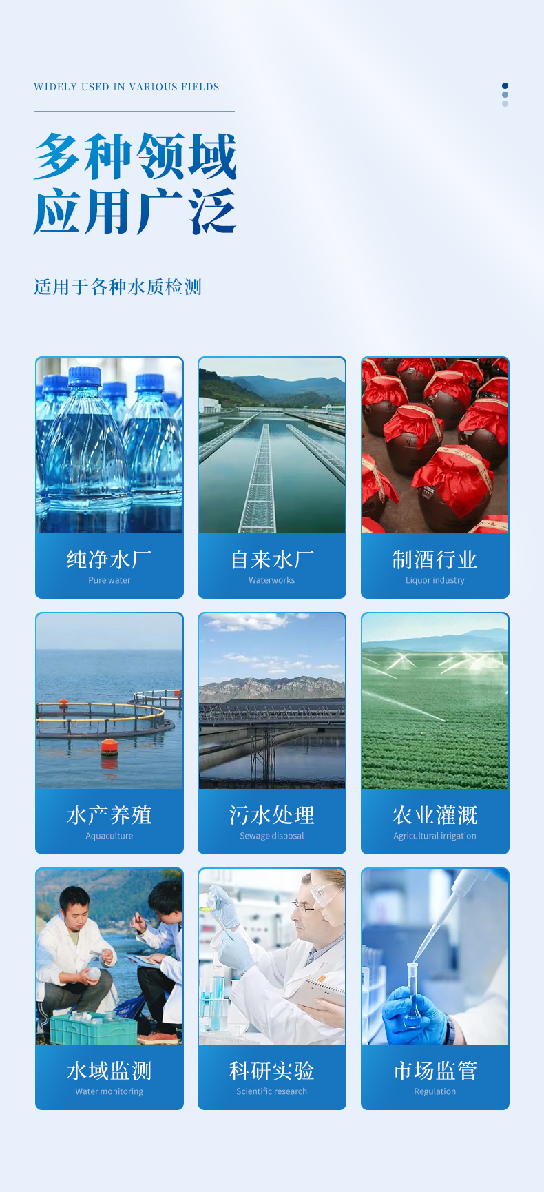 本儀器采用光電比色原理取代傳統的目視比色法。消除了人為誤差,因此測量分辨率大大提高。測量時,把被測水樣放入光電比色池,儀表會直接讀取數據。