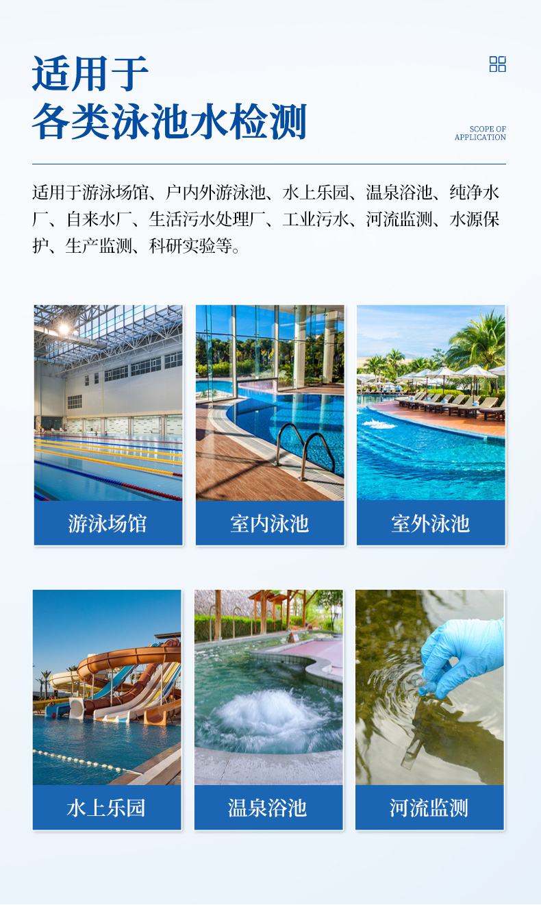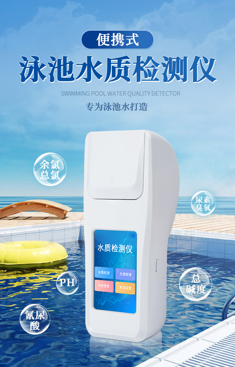 泳池水質檢測儀是一款適用于游泳場館、戶內外游泳池、水上樂園、溫泉浴池等領域的檢測儀,配合快速顯色檢測試劑,可“快速、簡單、準確、穩定”進行測量,擁有精美的外觀造型,簡單的操作界面,準確的檢測系統,幫助用戶獲得精細的數據,可更準確、有效的分析水體狀況。