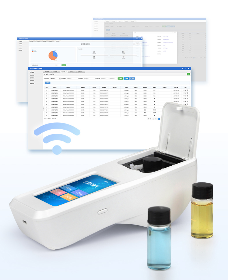 ②配置云監控平臺,檢測結果可直接無線傳至平臺,進行水質長短期分析,輔助管理。