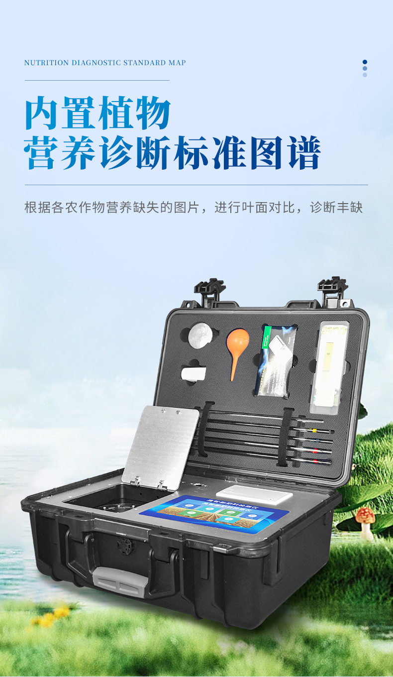 配套齊全,該儀器集藥、器、儀為一體,攜帶方便,相當于一個小型實驗室,用戶只需提供蒸餾水即可在要求時間內完成全部操作。適于農業服務部門或農資經銷商鑒別肥料真假、肥料廠商肥料生產中控、農資質檢部門進行農資打假,規范農資市場。