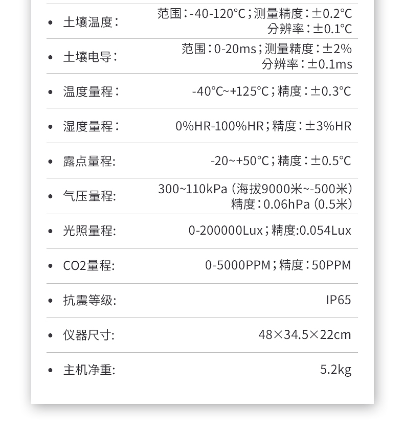 11.土壤水分技術參數水分單位:﹪(g/100g);含水率測試范圍:0-100﹪;誤差小于0.5%