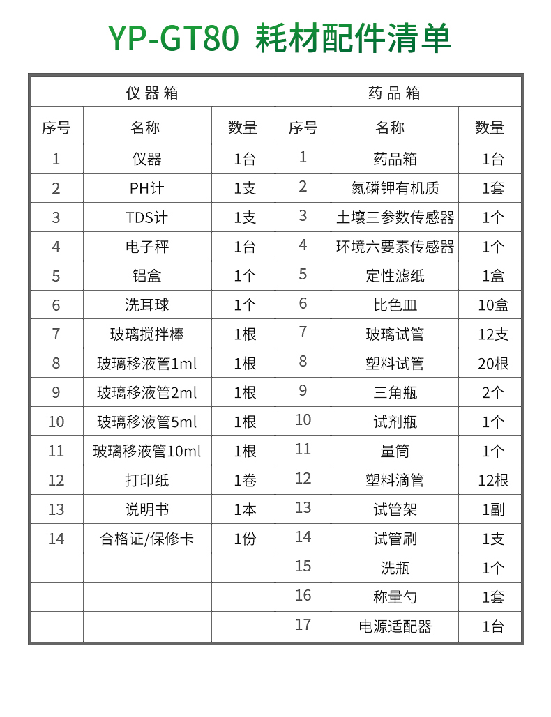 | 2 | PH計 | 1支 | 2 | 氮磷鉀有機質試劑 | 1套 |