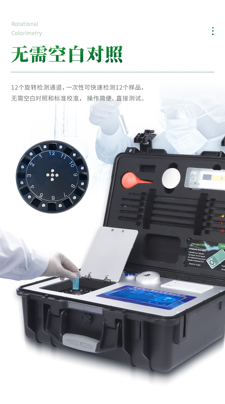 速度快捷:無需空白對照和標準校準,操作簡便、直接測試,配套成品藥劑開瓶即用,無須配置。