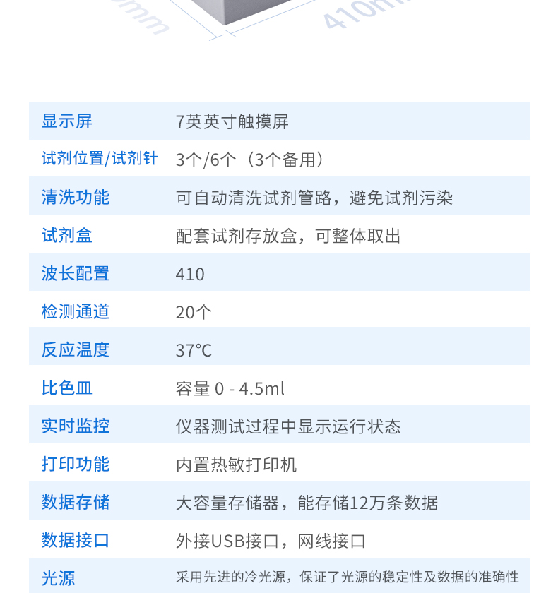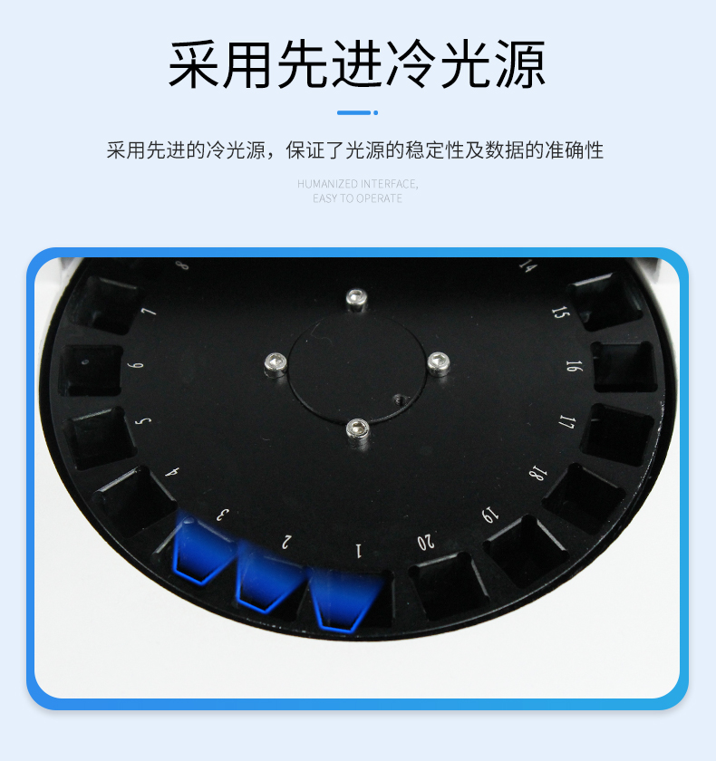 4.采用先進的冷光源,保證了光源的穩定性及數據的準確性