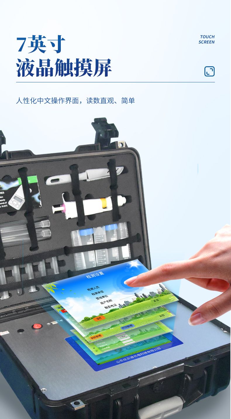 2、顯示方式:7英寸液晶觸摸屏顯示,人性化中文操作界面,讀數(shù)直觀、簡單。