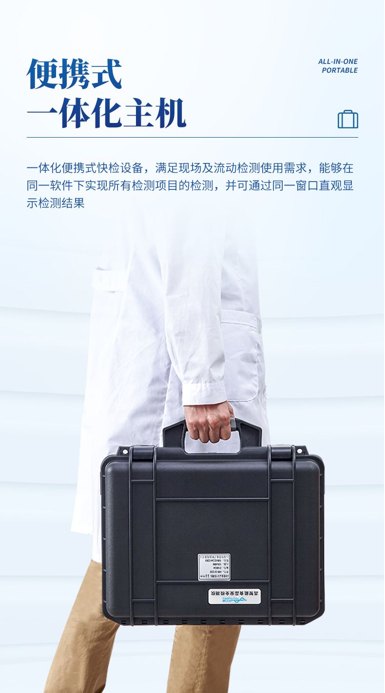 6、一體化便攜式快檢設備,滿足現(xiàn)場及流動檢測使用需求,能夠在同一軟件下實現(xiàn)所有檢測項目的檢測,并可通過同一窗口直觀顯示檢測結果。