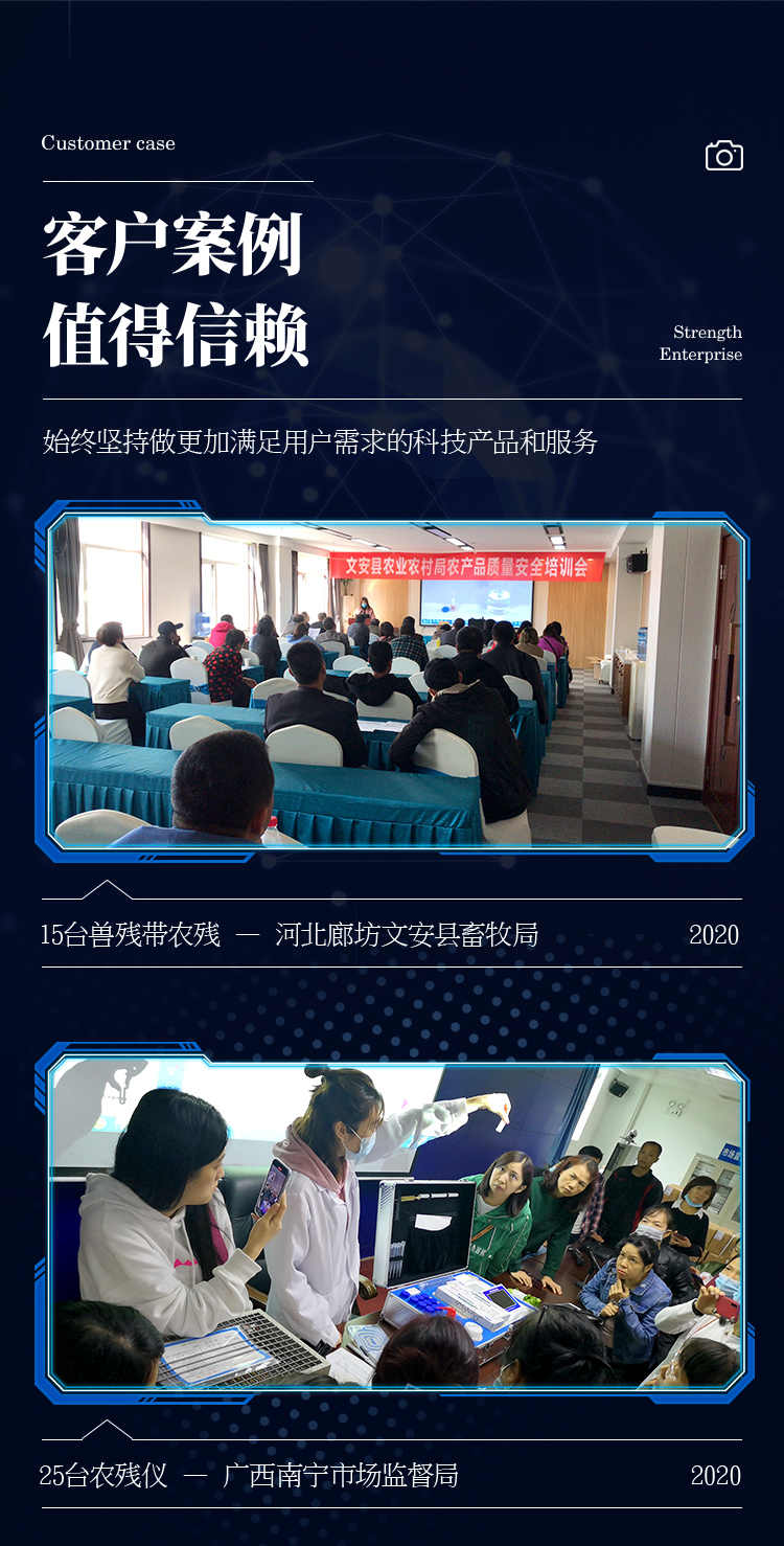 該多功能食品安全檢測儀為集成化食品安全快速檢測分析設備,廣泛應用于食藥監局、衛生部門、高教院校、科研院所、農業部門、養殖場、屠宰場、食品肉產品深加工企業、檢驗檢疫部門等單位使用。