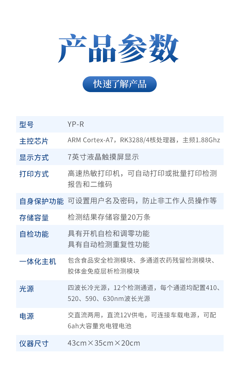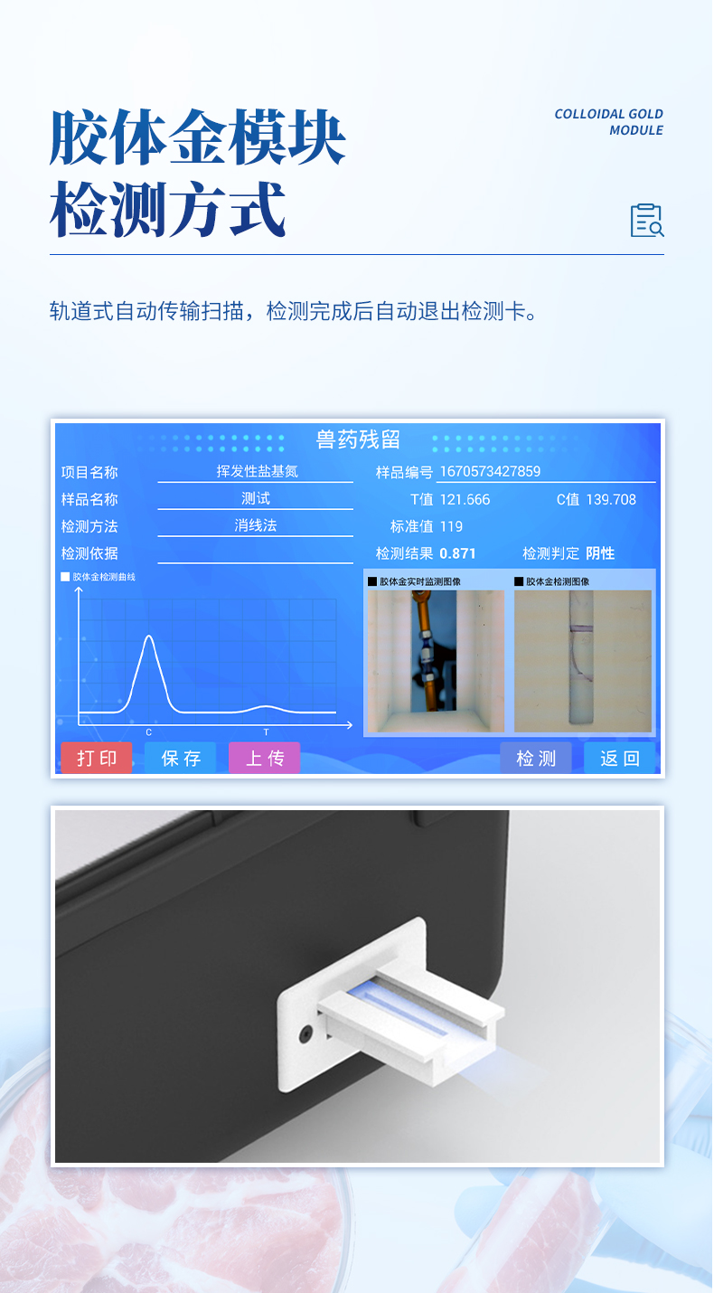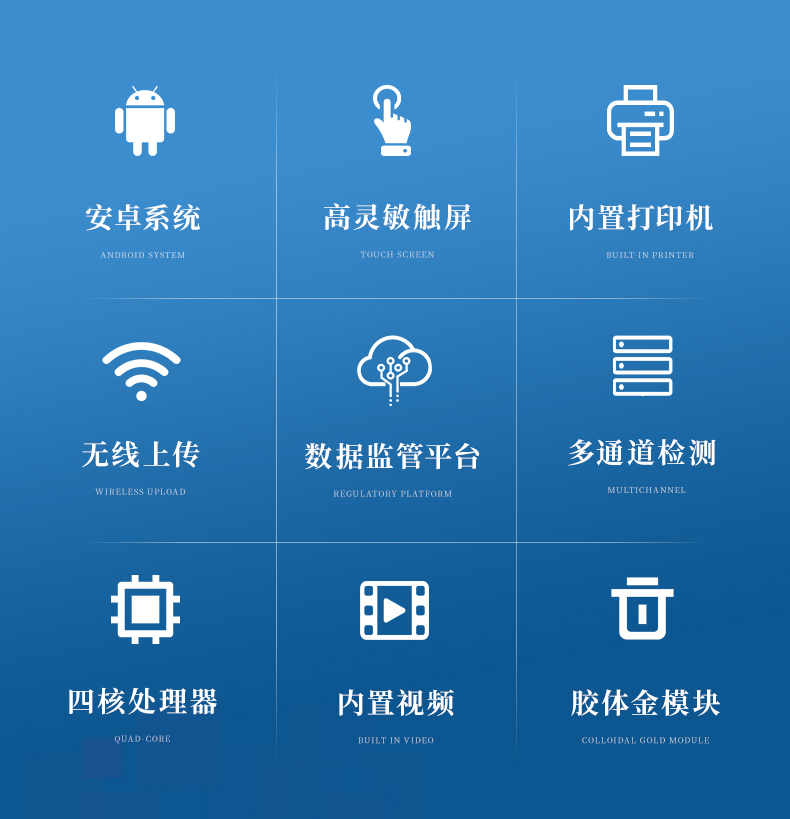 【產品簡介】智能安卓操作系統,帶膠體金檢測模塊,內置國家限量標準,18通道檢測