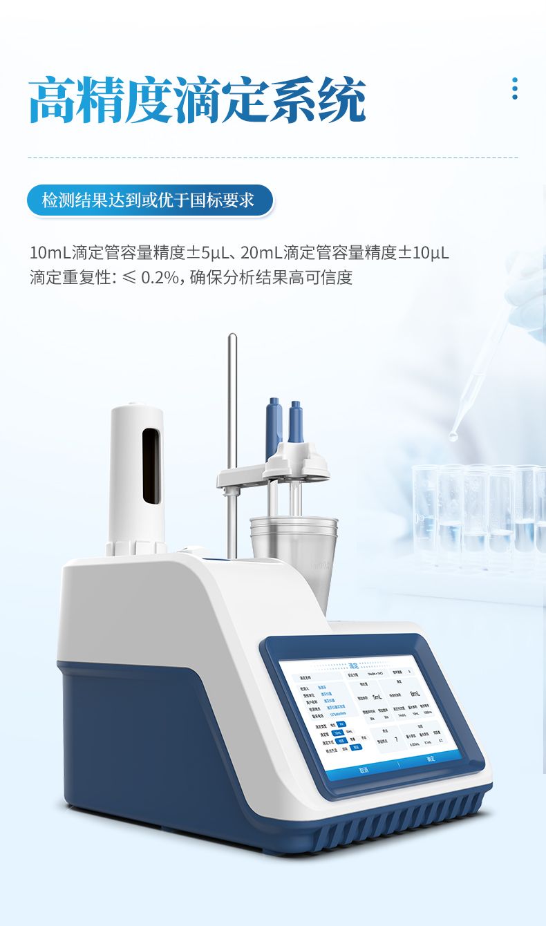 2.高精度滴定系統,檢測結果達到或優于國標要求。支持滴定管快速更換,維護便捷;