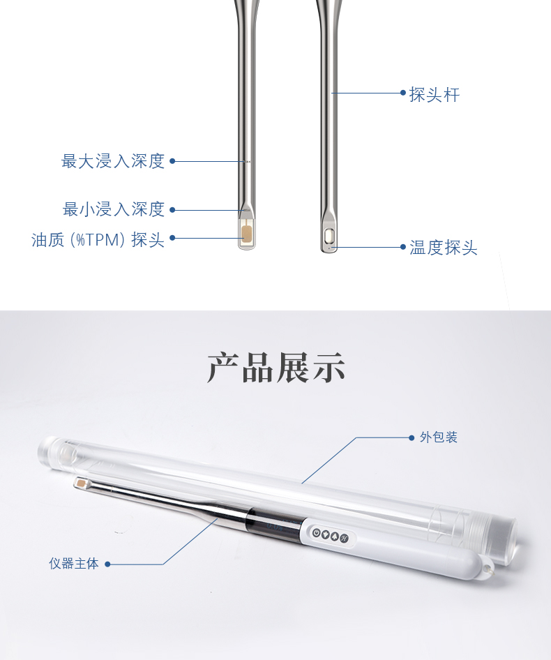 食用油脂是人們攝取能量和營養的重要來源,是加工食品的重要原料。油炸食品以其特有風味廣受消費者喜歡。用于煎炸的食用油在高溫煎炸過程中發生一系列的物理、化學變化,這些變化會生成對身體健康有害的物質。目前,煎炸食用油的傳統檢測方法多為化學方法,這些方法必須在實驗室內由專業人員操作,費時費力,化學試劑的使用可能會傷害檢測人員健康,且化學廢劑污染了環境。YP-SYP是一種快速,安全,高效食用油品質檢測儀,能夠快速檢測食用油中的極性化合物組分(TPM)含量。本產品能夠在油溫較高的環境下使用,適用于各種煎炸的食用油品質檢驗。
