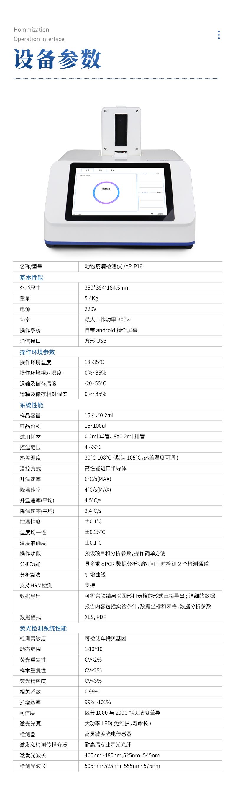 我公司開發(fā)的動物/寵物疫病檢測儀采用聚合酶鏈式反應(PCR)是一種常用的分子生物學技術,可用于檢測動物體液或組織樣本中的病原體DNA或RNA。PCR檢測儀用于擴增和檢測特定病原體的核酸序列,從而確定是否感染了特定的疫病。
