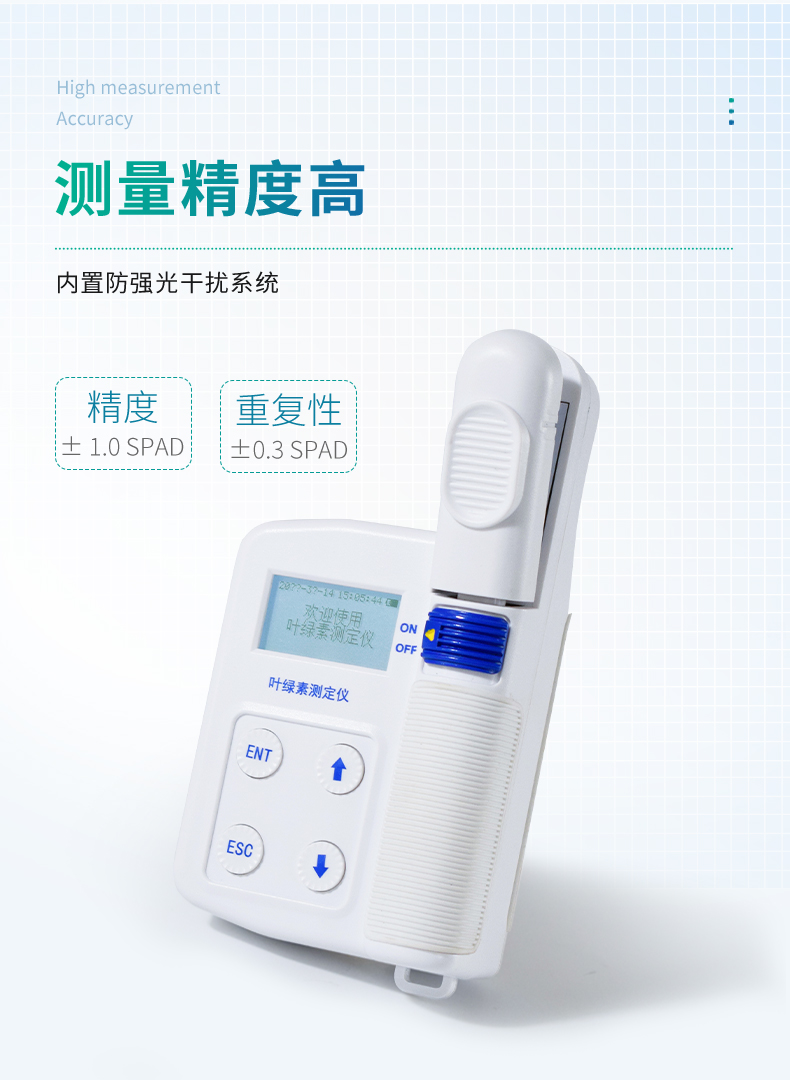 2.測量精度高(精度:± 1.0 SPAD,重復性:±0.3 SPAD) ,內置防強光干擾系統