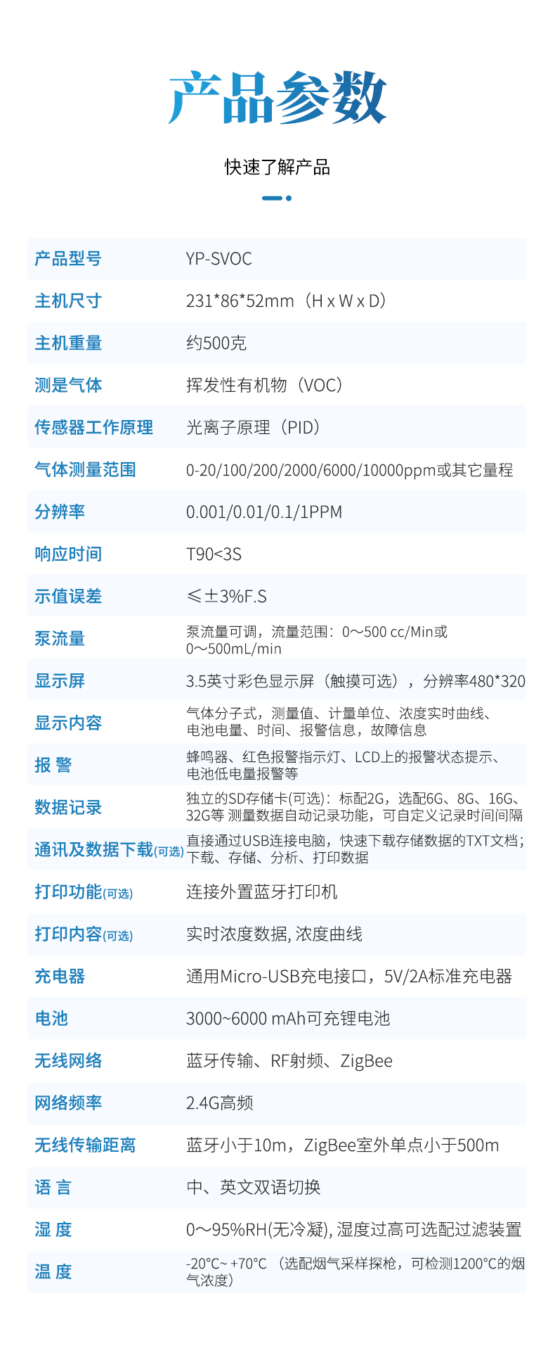 | 通訊及數據下載 (可選) | 可直接通過USB連接電腦,快速下載存儲數據的TXT文檔; 下載、存儲、分析、打印數據 |