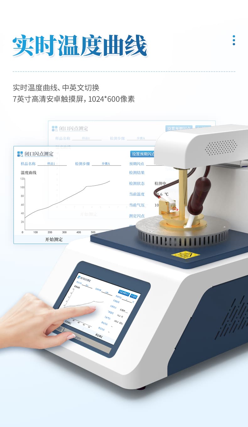 儀器按照GB/T 261-2021方法規定的升溫曲線加熱,溫度接近預期閃點值時自動點火,當出現閃點時儀器自動鎖定結果,并顯示和打印,同時啟動風機自動對加熱器進行冷卻。