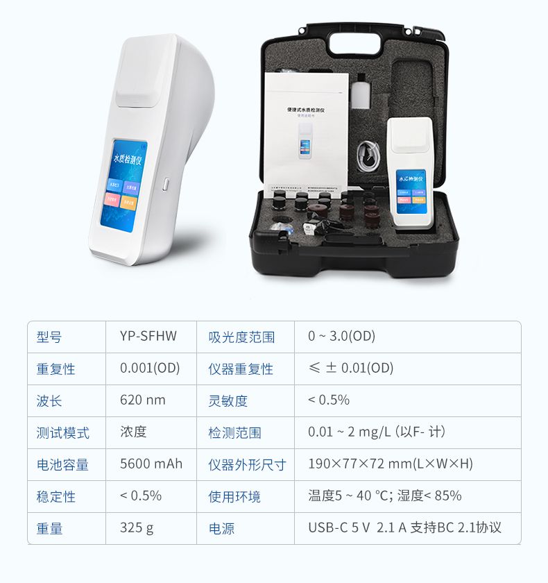本儀器采用氟試劑分光光度法(國標(biāo)方法原理)。水樣中的氟離子在特定酸度下,與氟試劑及硝酸鑭反應(yīng),生成穩(wěn)定的藍(lán)色三元絡(luò)合物,其顏色深度與氟離子濃度成正比。儀器內(nèi)的精密光學(xué)系統(tǒng)會測量該溶液的特定波長吸光度,并自動依據(jù)預(yù)先內(nèi)置的校準(zhǔn)曲線,直接計算出水中氟化物的準(zhǔn)確濃度值(mg/L)。該方法抗干擾能力強(qiáng),結(jié)果準(zhǔn)確可靠。