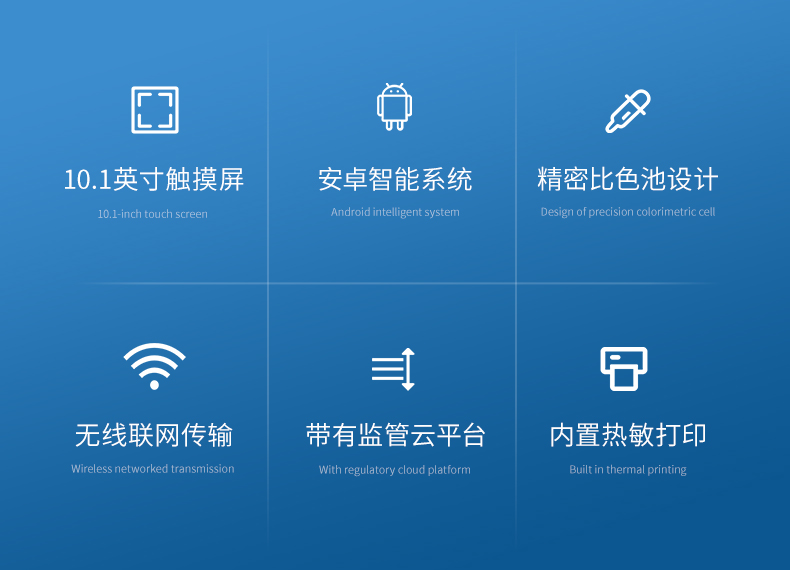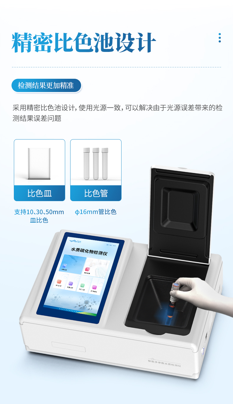 3、采用精密比色池設計,使用光源一致,可以解決由于光源誤差帶來的檢測結果誤差問題,檢測結果更加精準。
