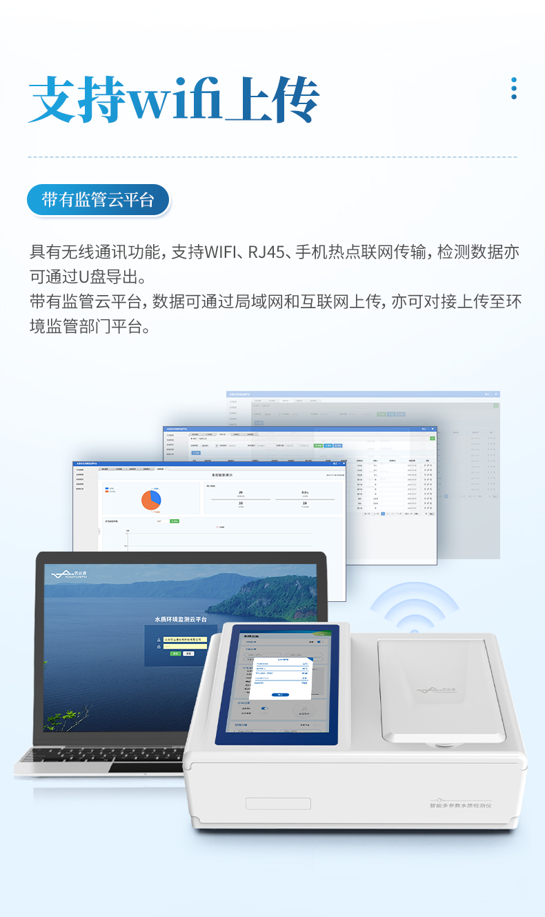 10、儀器帶有監管云平臺,數據可通過局域網和互聯網上傳,亦可對接上傳至環境監管部門平臺。