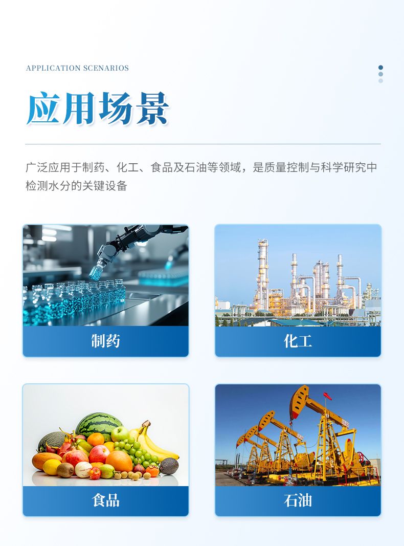 該儀器廣泛應用于制藥、化工、食品及石油等領域,是質量控制與科學研究中檢測水分的關鍵設備。