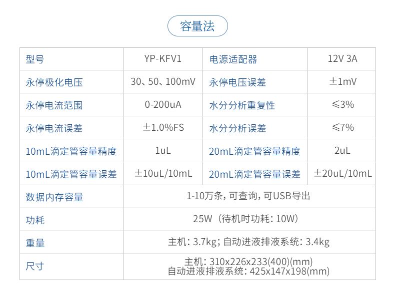 本卡爾費休水分儀(容量滴定法)的測量精度符合JJG 1154-2018《卡爾·費休容量法水分測定儀檢定規程》規定。