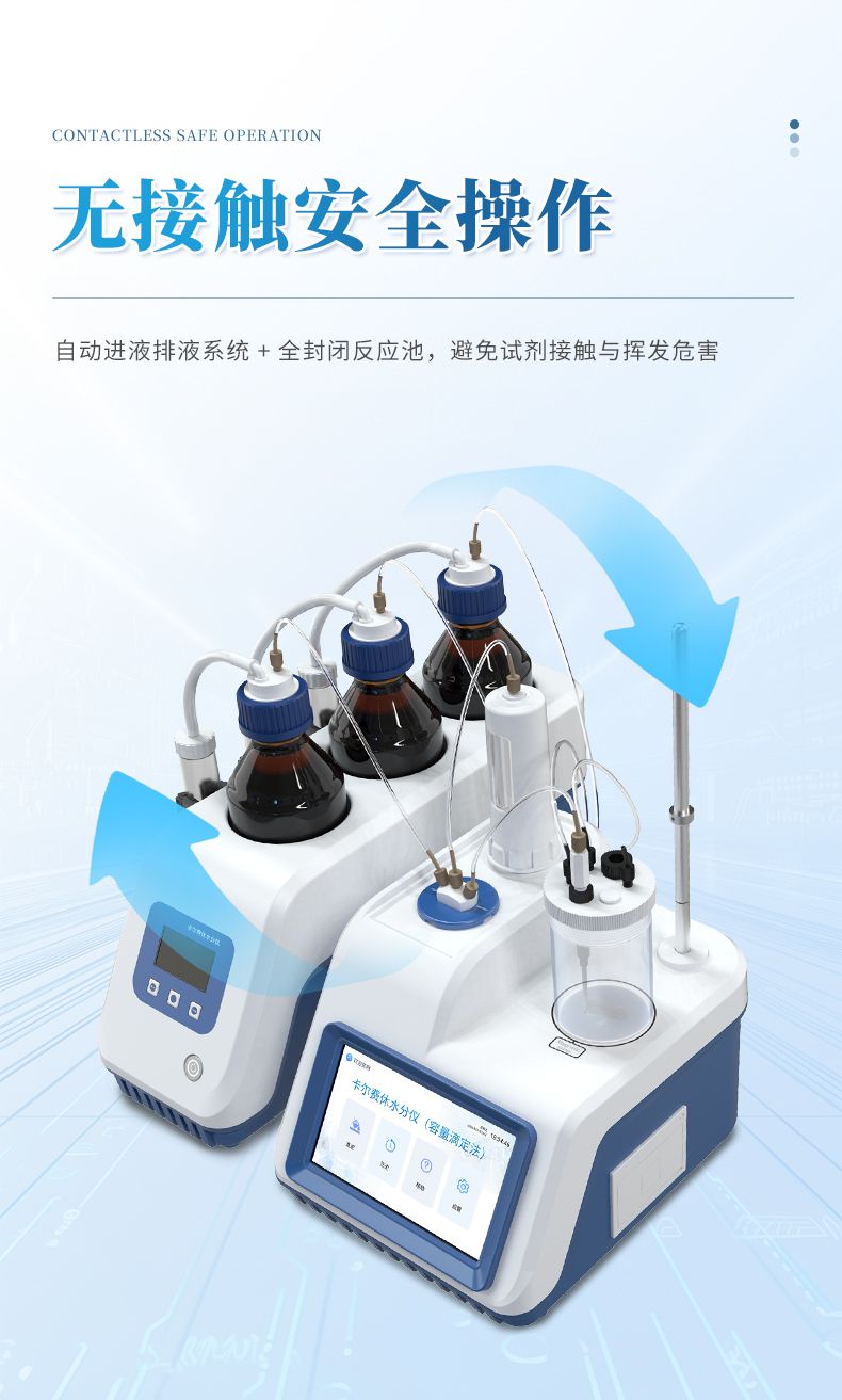 該儀器具有測定精度高、分析速度快、使用范圍廣、穩定可靠、操作簡單等優點。廣泛用于電力、石油、化工、農藥、醫藥等行業。樣品測定過程由儀器自動控制,攪拌、測定60秒左右自動完成,直接顯示測定結果;全密封滴定池瓶,避免試劑與人接觸,也避免環境濕度的影響;