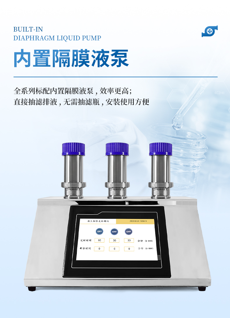 | 抽濾方式 | 內(nèi)置隔膜液泵負(fù)壓抽濾,無(wú)需抽氣瓶 |
