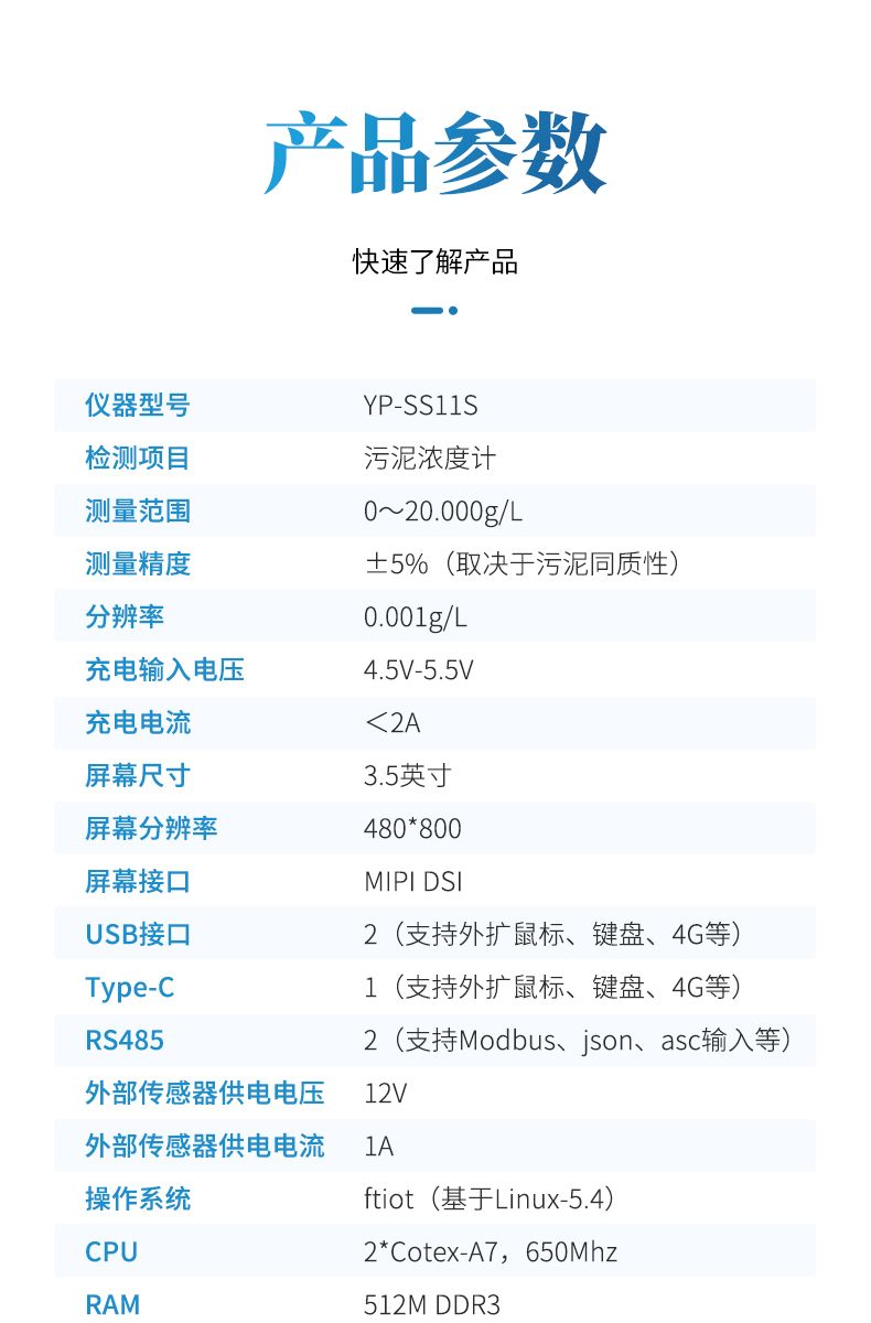 | 7 | 污泥濃度 | 0~20.000g/L | 散射光法 | ±5%(取決于污泥同質性) | 0.001g/L | ? | |