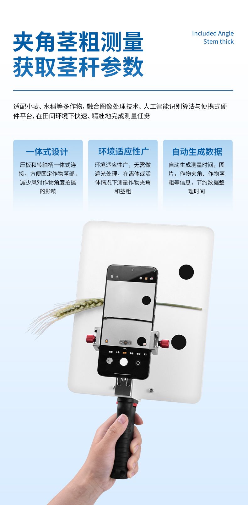 3)夾角莖粗測量儀適配小麥、水稻等多作物,快速獲取莖稈形態(tài)參數(shù);