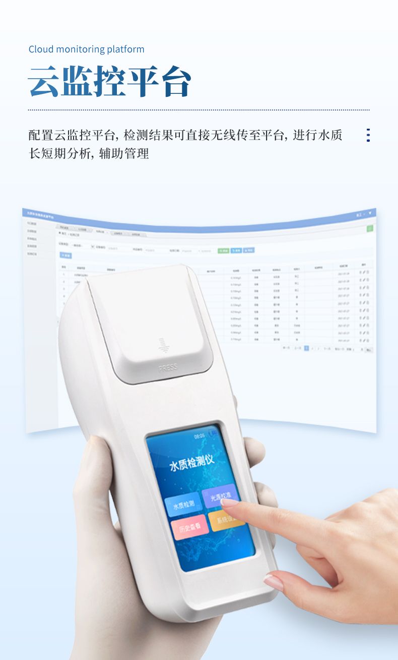 ②配置云監(jiān)控平臺,檢測結果可直接無線傳至平臺,進行水質(zhì)長短期分析,輔助管理。