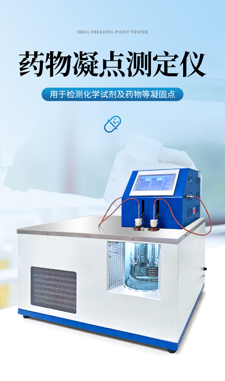 本儀器按《中華人民共和國(guó)藥典》2020年版四部 通則 0613凝點(diǎn)測(cè)定法要求設(shè)計(jì)制造,用于檢測(cè)化學(xué)試劑及藥物等凝固點(diǎn)。本儀器采用了模塊化設(shè)計(jì),檢測(cè)部分采用了先進(jìn)的傳感器,主控部分采用工業(yè)級(jí)PLC系統(tǒng),控制性能穩(wěn)定,制冷采用高性能壓縮機(jī),具有降溫速度快,使用壽命長(zhǎng)等優(yōu)點(diǎn)。本儀器采用工業(yè)控制屏操作,樣品裝好后,一鍵開啟,自動(dòng)往返式機(jī)械攪拌、自動(dòng)顯示溫度曲線、自動(dòng)判斷凝固點(diǎn)、自動(dòng)打印測(cè)試數(shù)據(jù)。本儀器配有加熱和制冷,介質(zhì)浴溫控范圍廣。