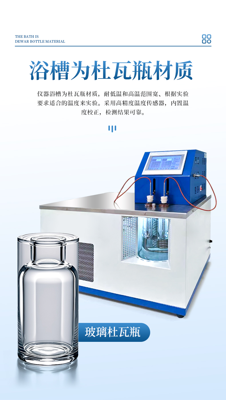 5、儀器浴槽為杜瓦瓶材質(zhì),耐低溫和高溫范圍寬、